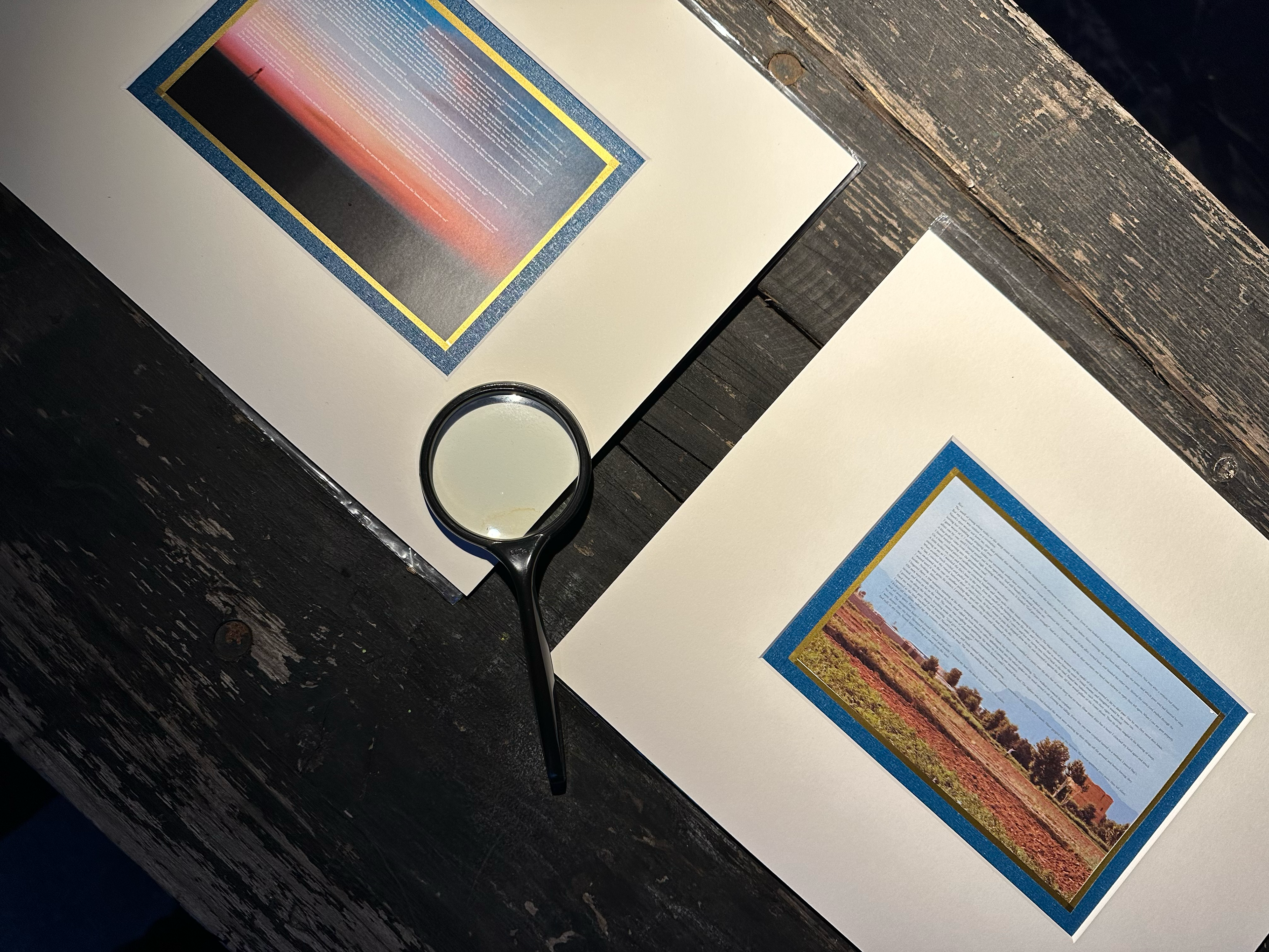 The photos are printed in a small size, 10x15 cm, imitating the traditional small size of Persian paintings, framed in large passepartouts, as seen in museums, and presented with a magnifier that helps to read the story. This work serves not only as a witness but also as a requiem for a dead river that was named after life.